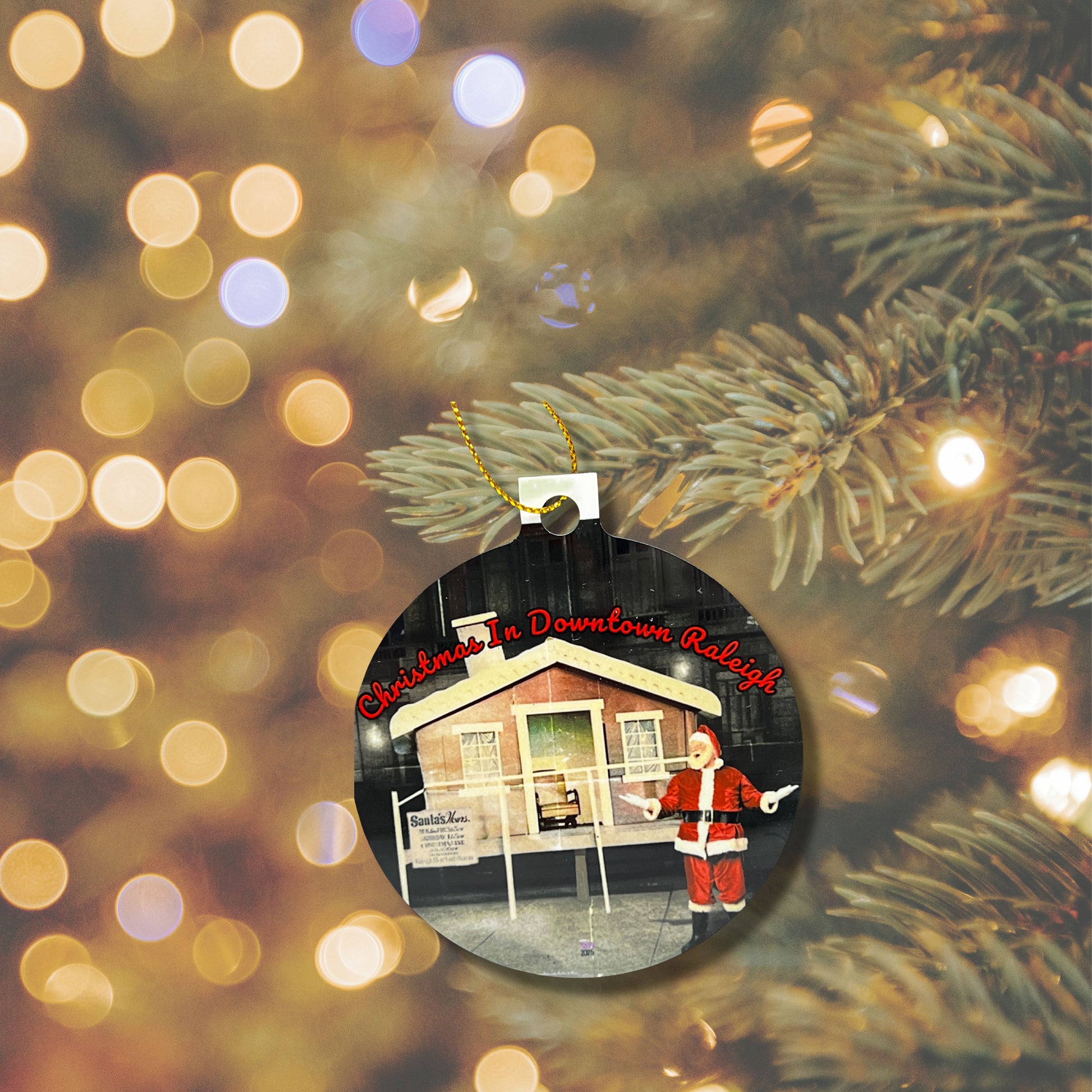 A little Raleigh nostalgia for your tree. This ornament features a vintage downtown Santa scene that locals love and remember. Perfect for Raleigh natives, new locals, and anyone who collects NC holiday charm.